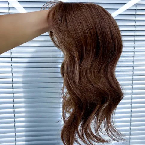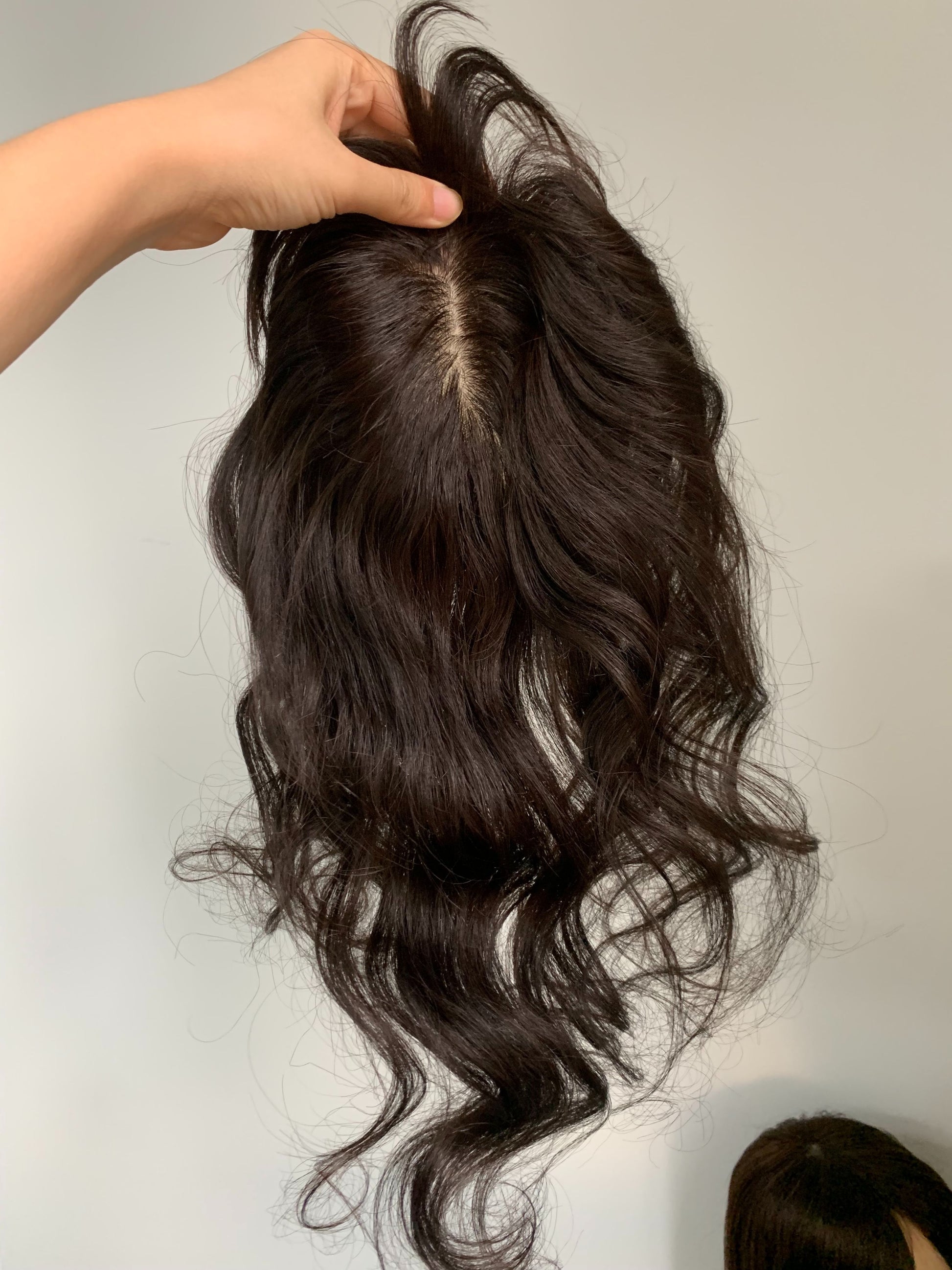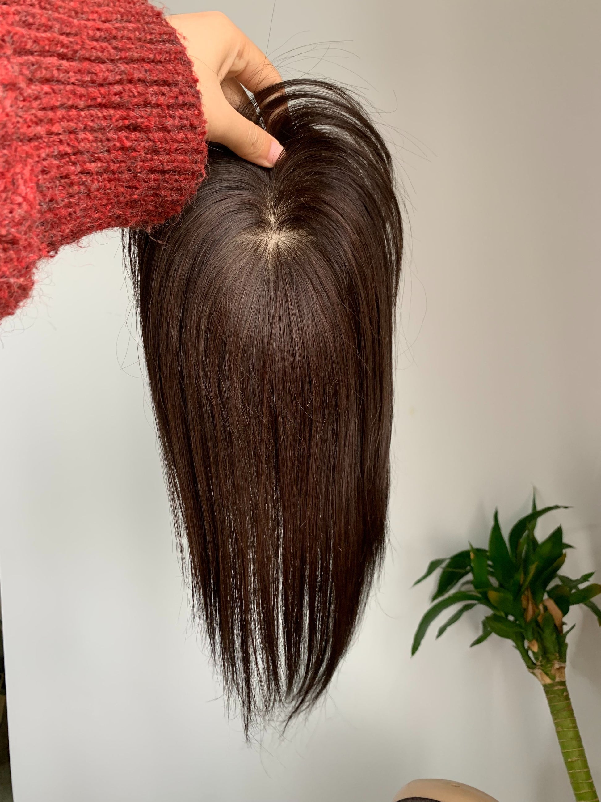 3.9×4.7インチ モノベース ハイライト 人毛 トッパー 根元付き (カスタマイズ)