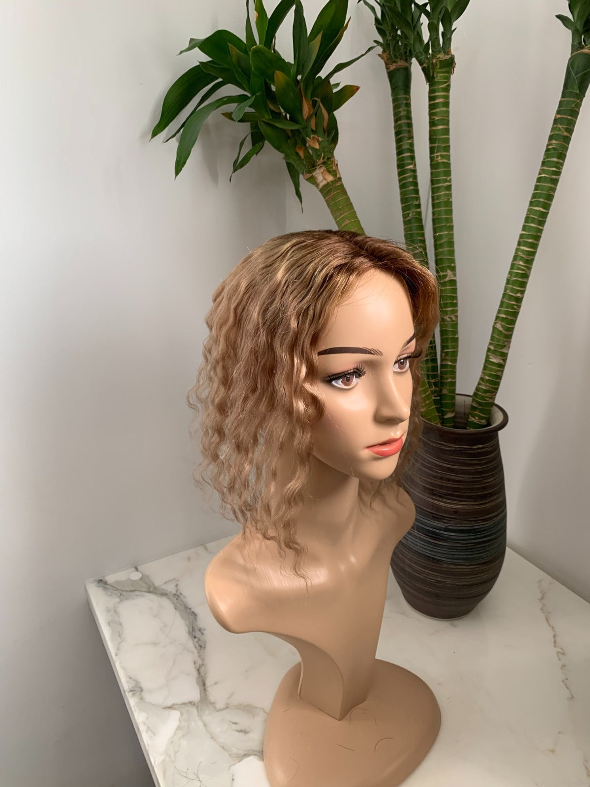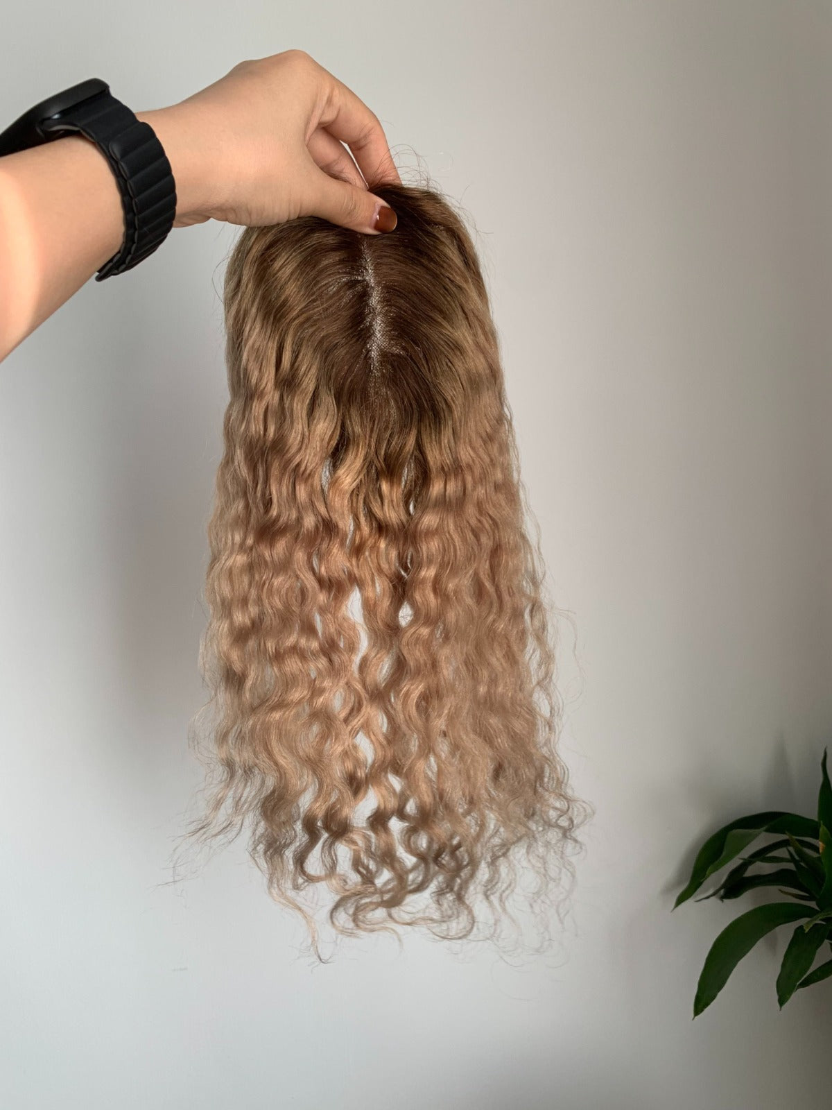 3.9×4.7インチ モノベース ハイライト 人毛 トッパー 根元付き (カスタマイズ)