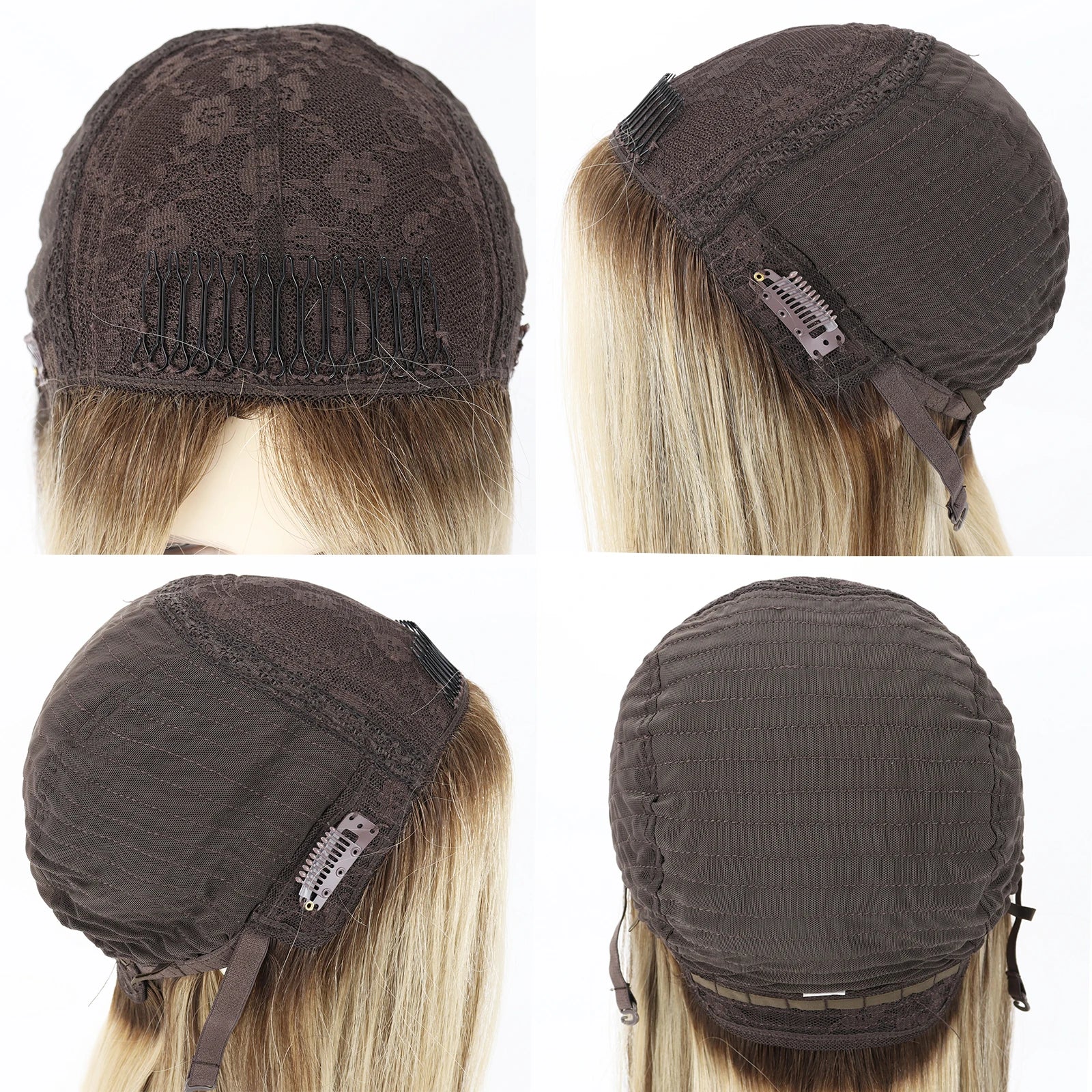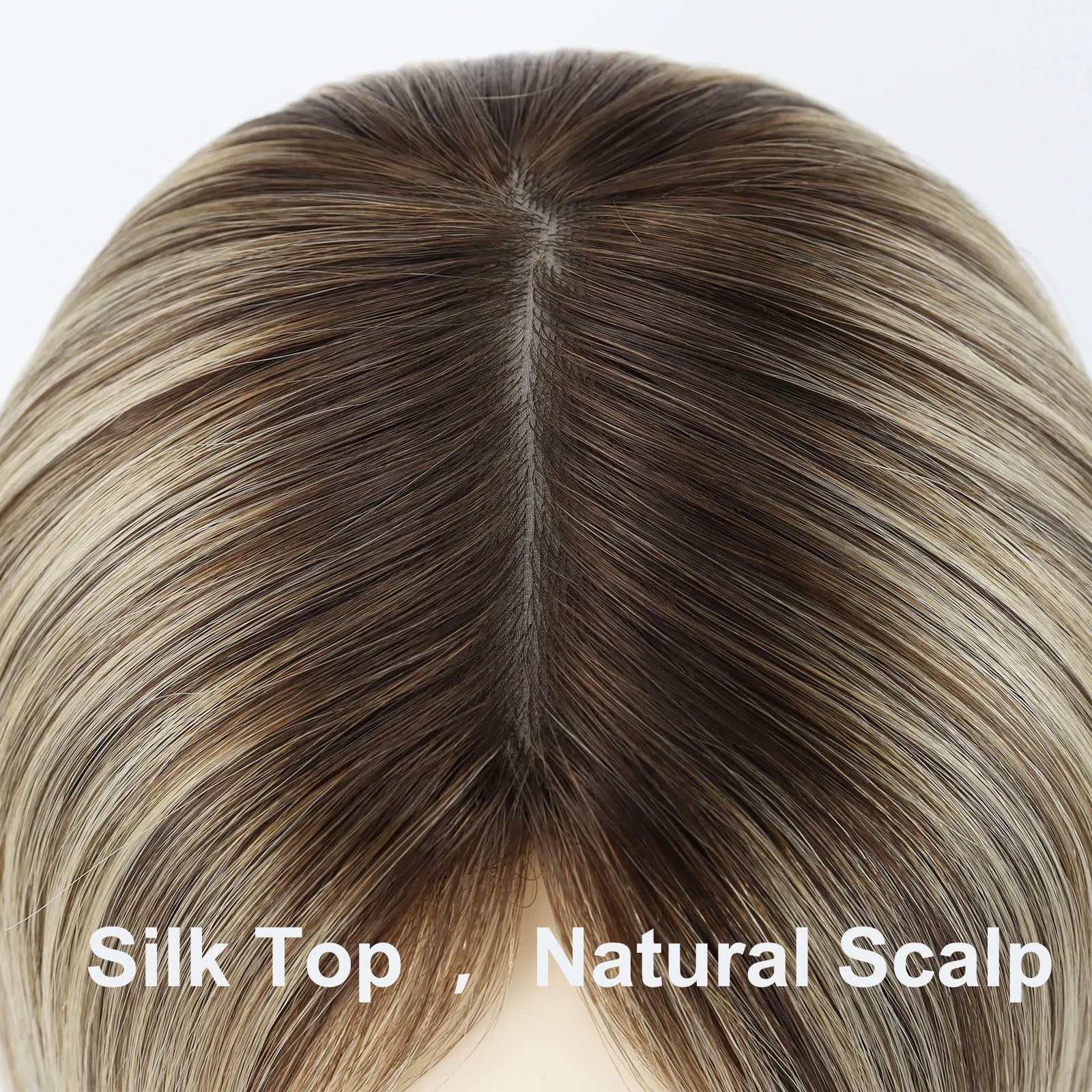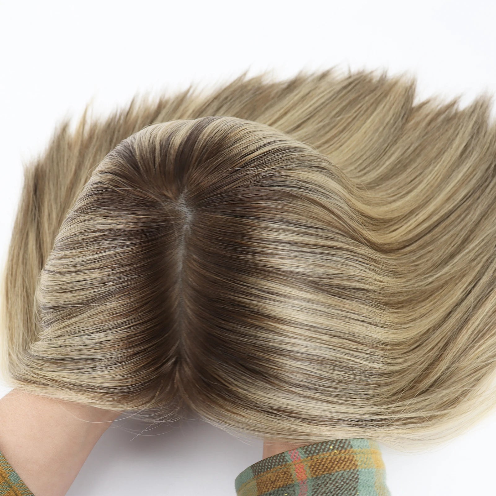 14 inch Wig for Women #Q8 Blonde Mix Highlight Rooted Human Hair Wig