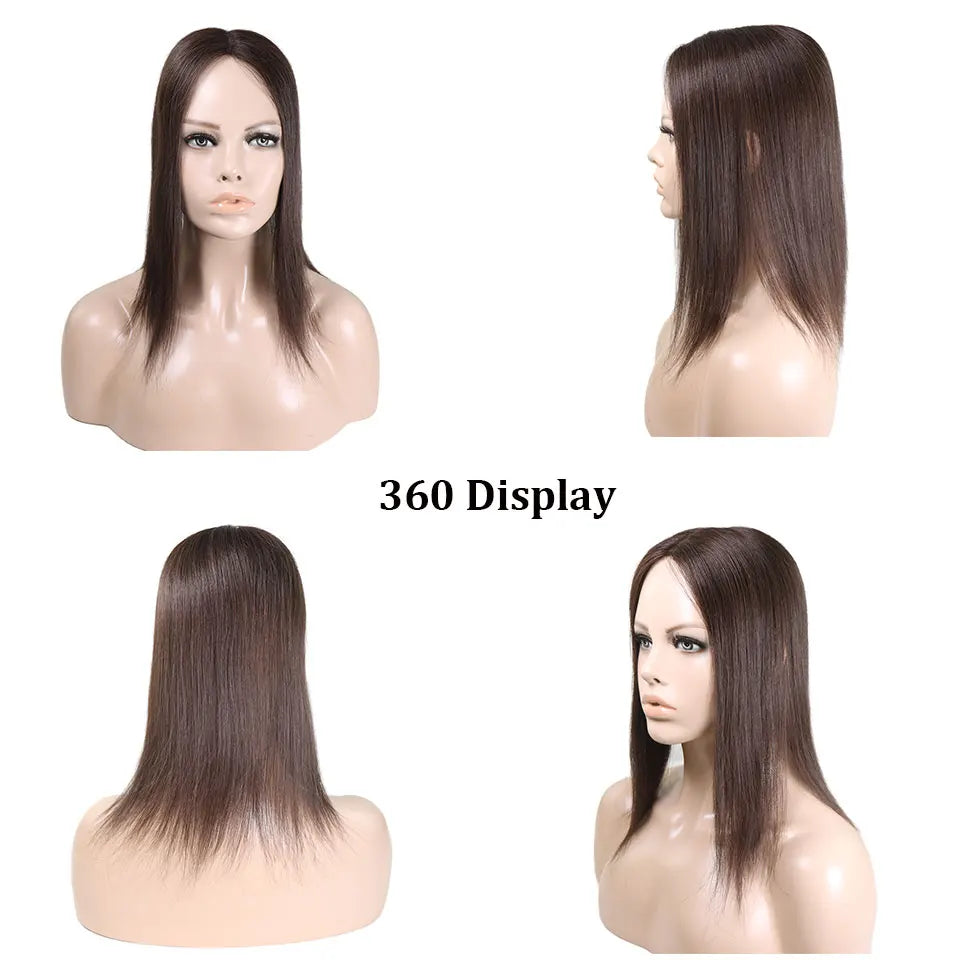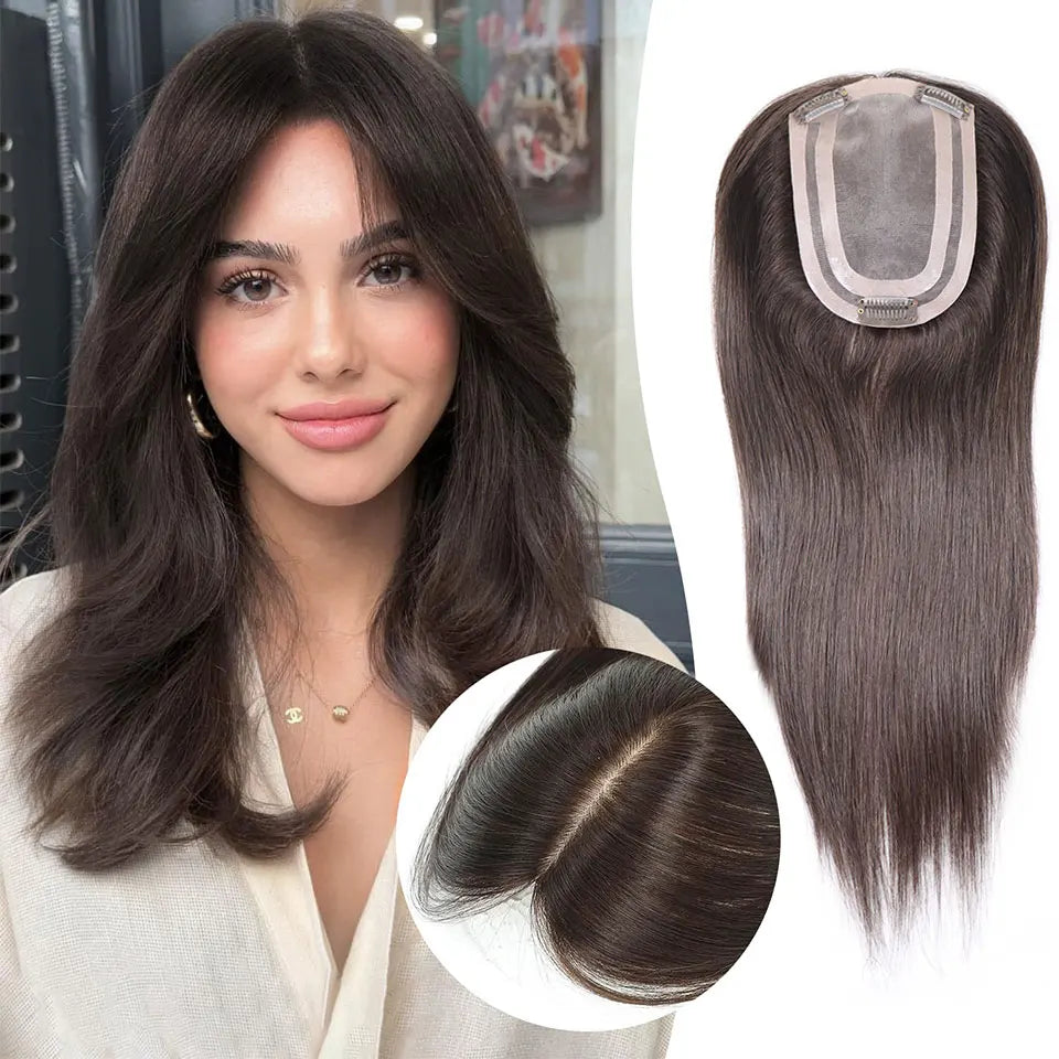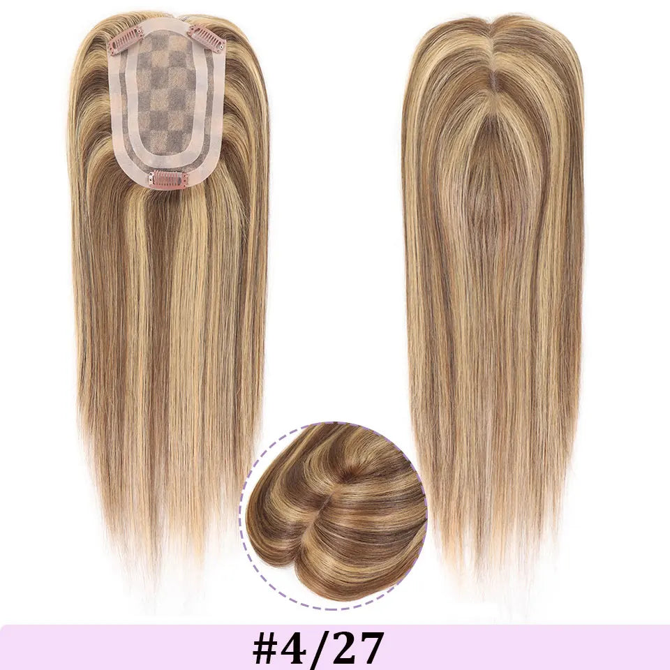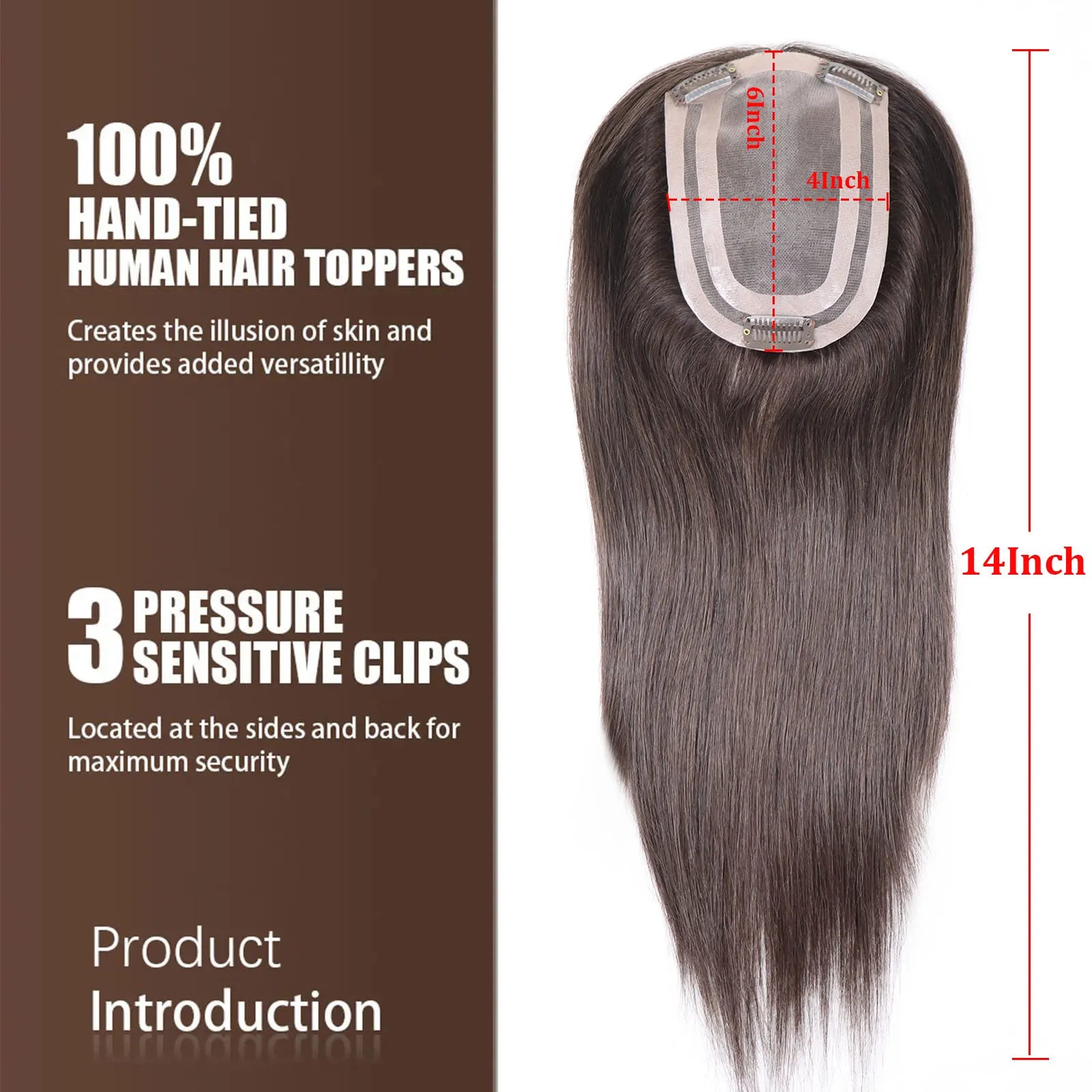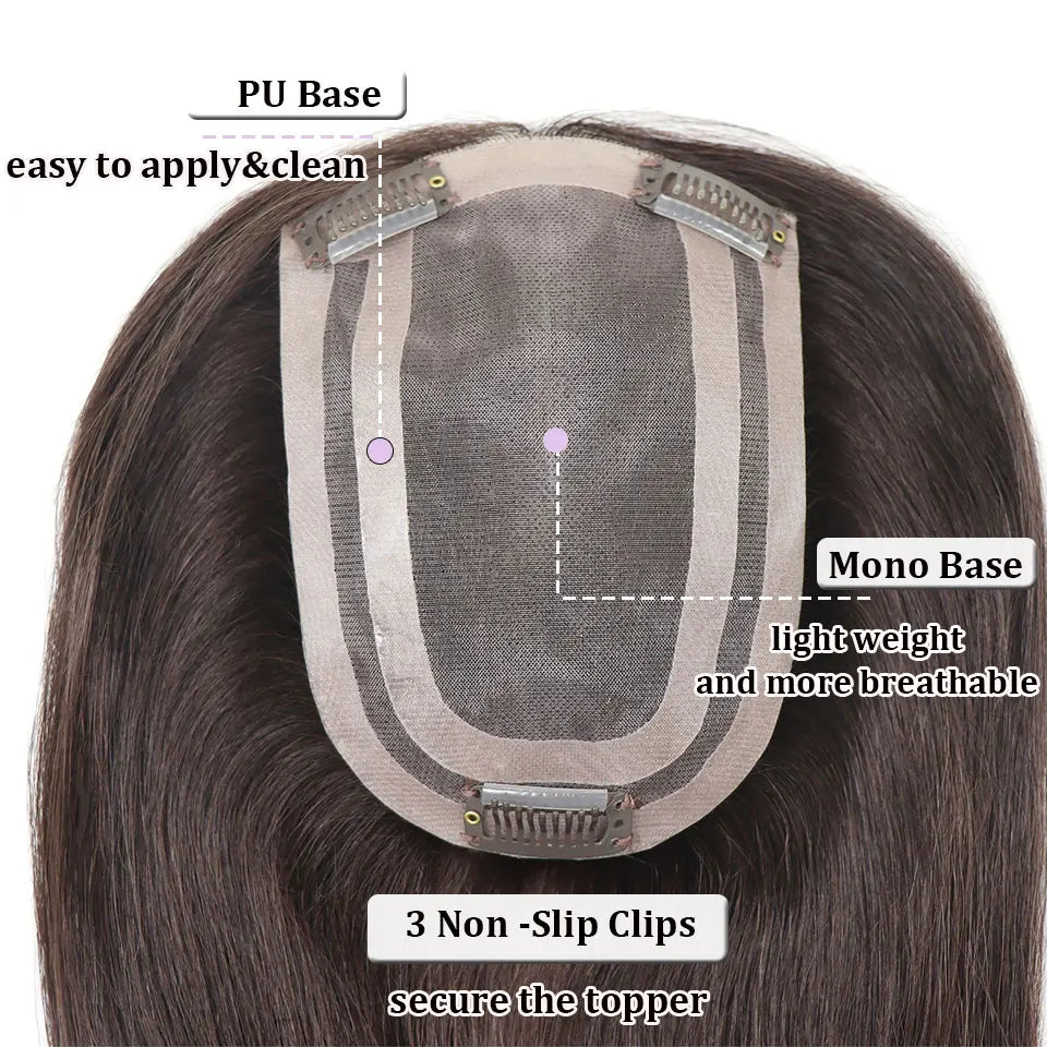 4x6 inches Human Hair Topper For Woman Clip-In One Piece Invisible Toupee Hair MONO&PU Base Hairpiece