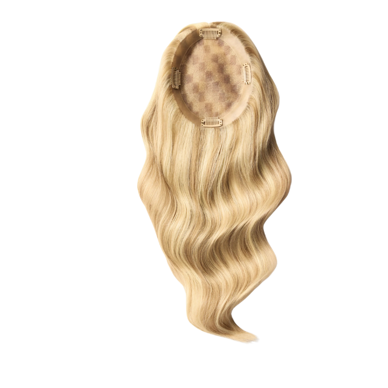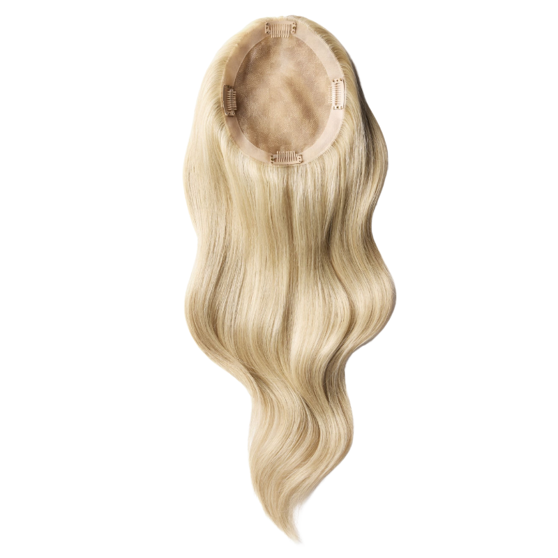 A free part hand-tied human hair topper, high quality Brazilian virgin hair, silky healthy hair texture. The hair can be styled and dyed like your own hair.
