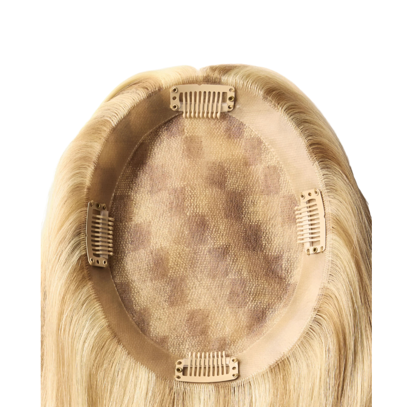 5*6 inches Mono Base Highlight Human Hair Toppers for Women Wavy Hair without Bangs