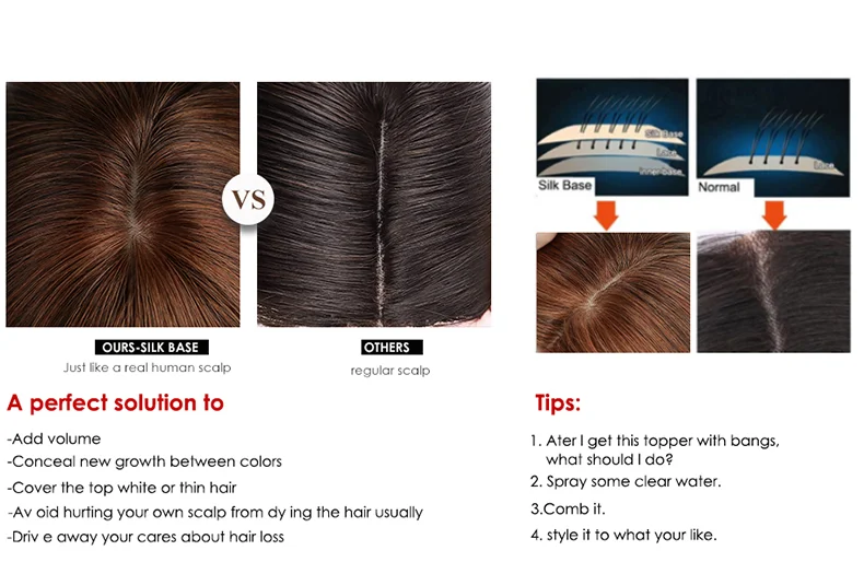 If you have thinning hair, graying hair, chemo-related hair loss, or poor hair quality on top, this product is your ideal solution. It blends seamlessly with your natural hair, ensuring no one will notice. The breathable single-layer base provides all-day comfort for any occasion. Embrace your beauty and confidence—you deserve it today!